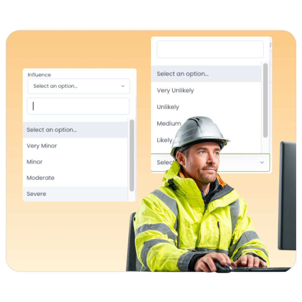 Create your register with sites, areas, activities, and categories. Add owners, scoring criteria, and review cycles so every assessment follows the same structure.