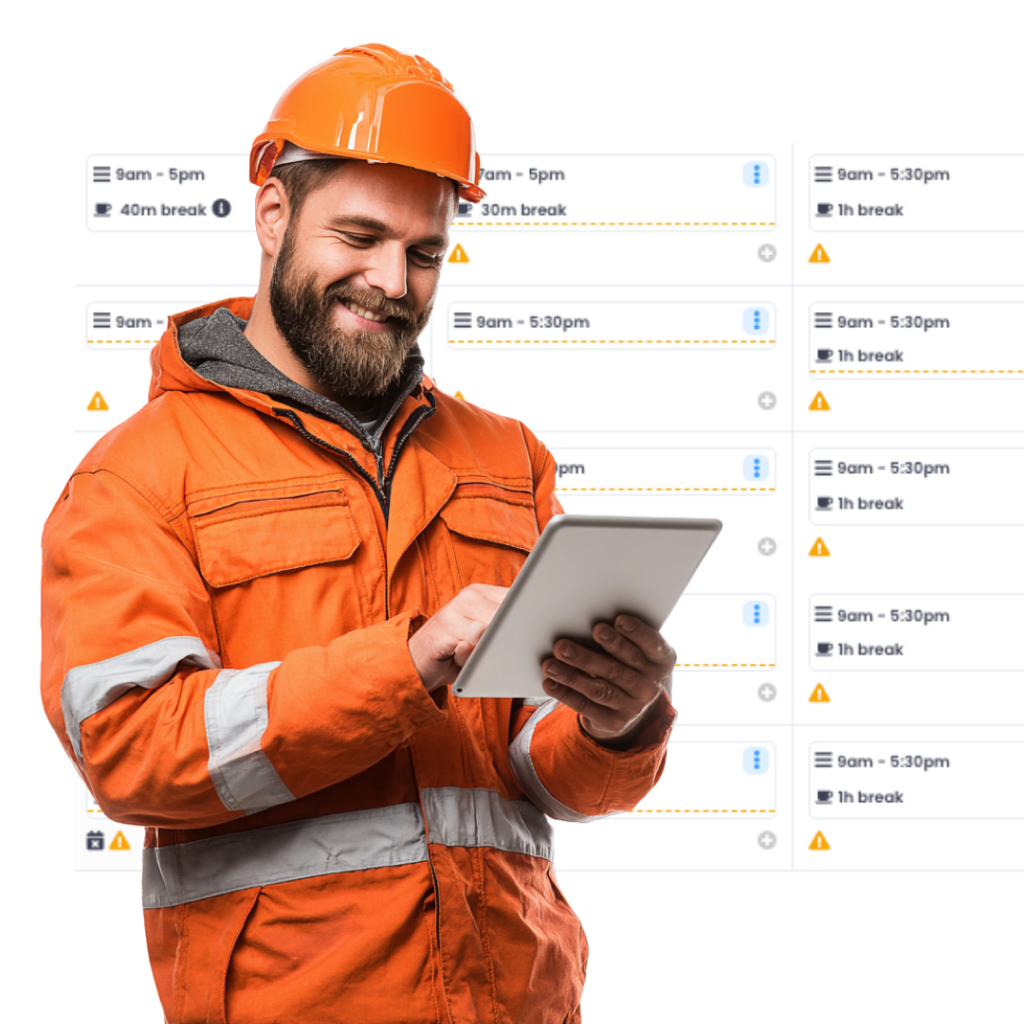 Build, update, and share rotas in minutes with a rostering system designed for operational teams. Keep shifts covered, avoid conflicts, and give workers clear visibility of when they’re on site.