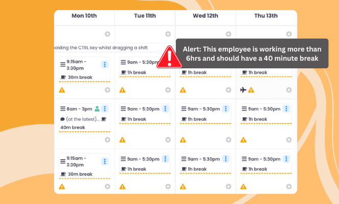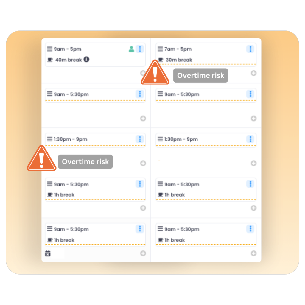 Get alerts when shifts push someone into overtime or risk excessive hours, helping your rostering software support safer scheduling.