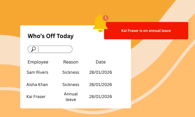 See holidays, sickness, TOIL, and unavailability directly inside the rota so your roster system avoids unsafe gaps and double-bookings.