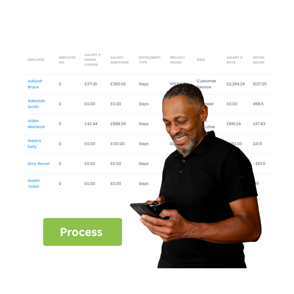 All hours, overtime, absences and working patterns flow straight from HR, Rotas and Time & Attendance, always accurate, always up to date.