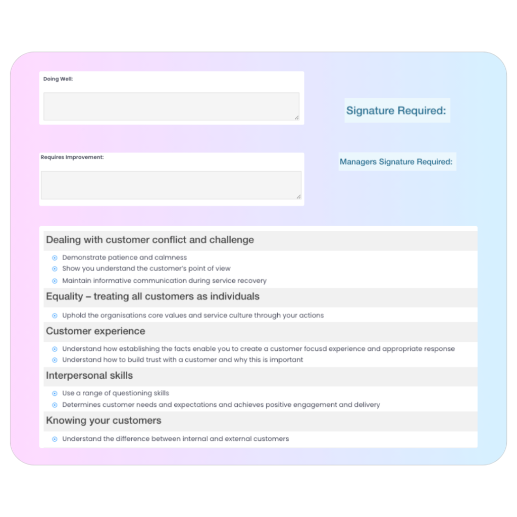 Create performance templates that fit your business from quick check-ins to annual appraisals.