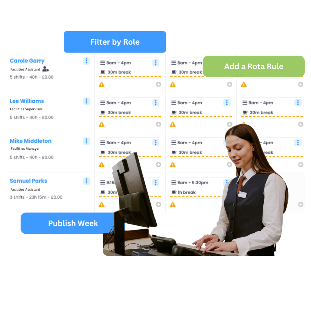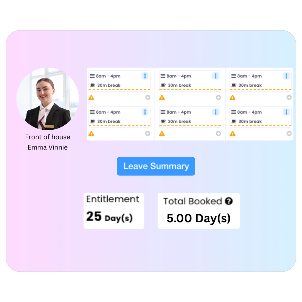 Modern hospitality rota software helps track contracted hours, overtime, and rest periods so you avoid breaching working time regulations. With clear reporting and time tracking, managers can spot potential issues early and maintain fair, compliant scheduling across the team.