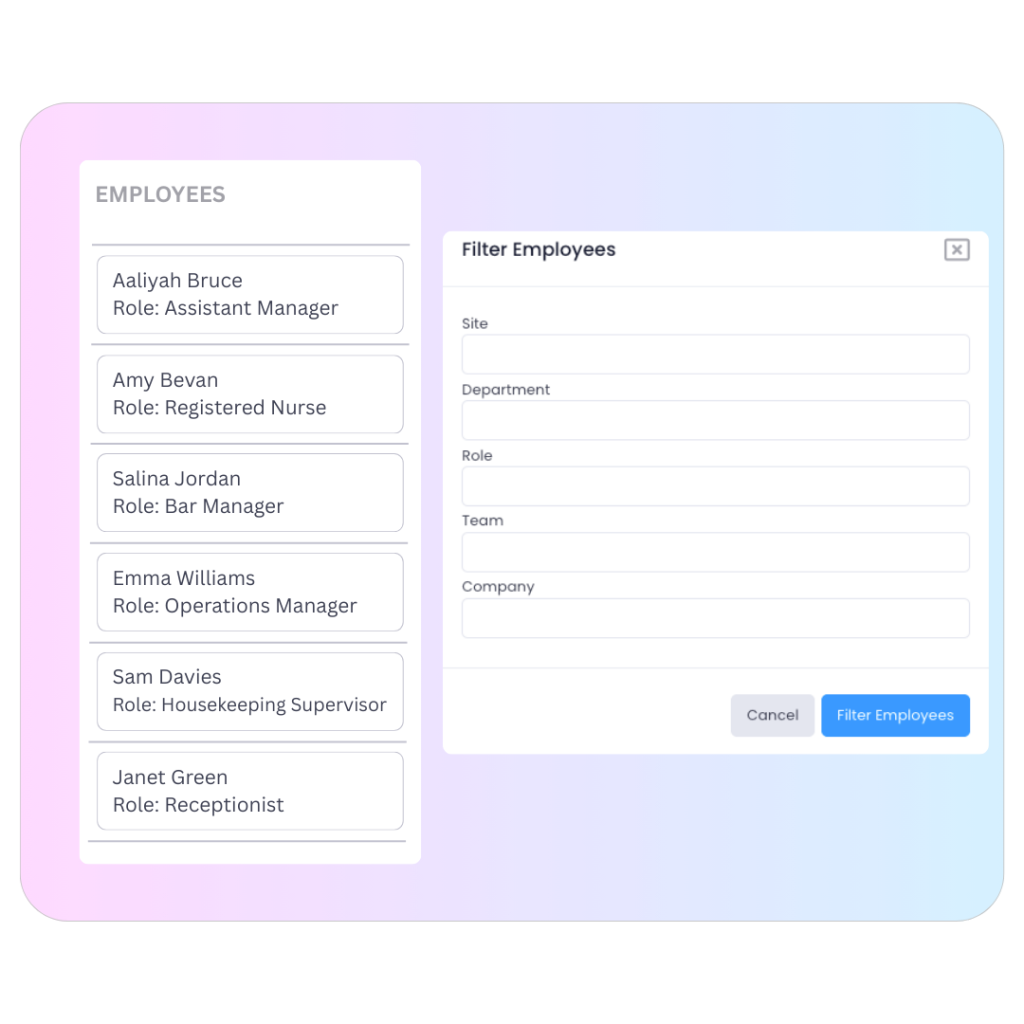 Evalu-8 connects your people records and your rotas, so availability, contracts, compliance and shifts all work from the same source of truth.