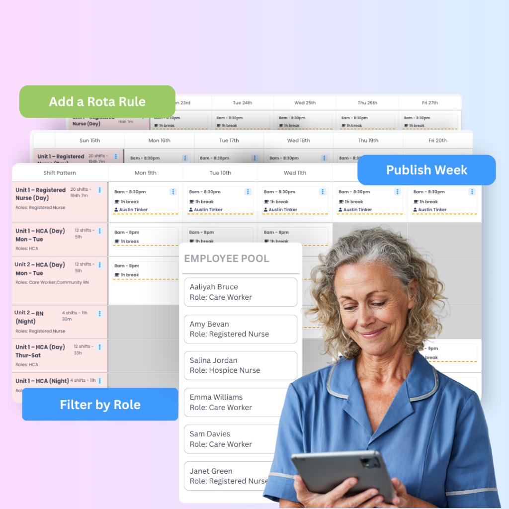 Rota software for hospices helps bring those decisions into one clearer view, making it easier to plan coverage across services while protecting visibility, balance and safe staffing levels.