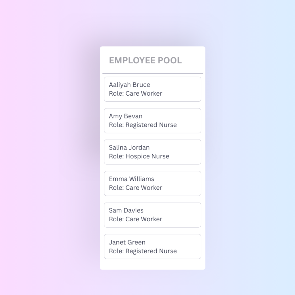 A shared staff pool is exactly what it sounds like: one wider group of employees who may be scheduled across multiple services or units, depending on care needs and availability.