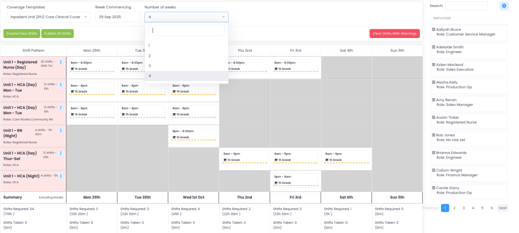 Four-week rotas allow managers to distribute shifts, weekends and nights more evenly across the team while maintaining safe staffing coverage.